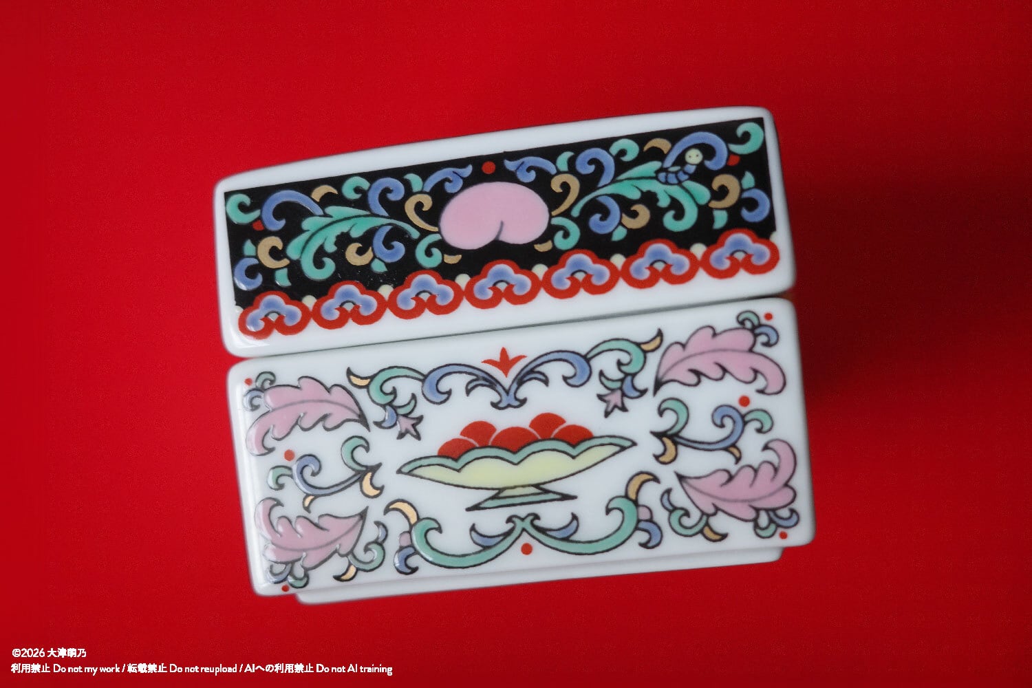 大切なものを入れるのにぴったりな小さな蓋物。黒が磁器の白さをいっそう引き立てます。